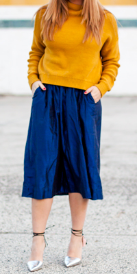 This happens to me a lot, where I have a certain style shirt in mind to wear with a particular outfit, only to find that top doesn’t exist in my current closet. So instead I start sorting through my dresses for a reasonable replacement, which is how yesterday’s outfit came to be. This t-shirt-dress-turned-top wasn’t exactly what I had in mind, but it worked well to balance out the casual, playful vibe I was hoping for.