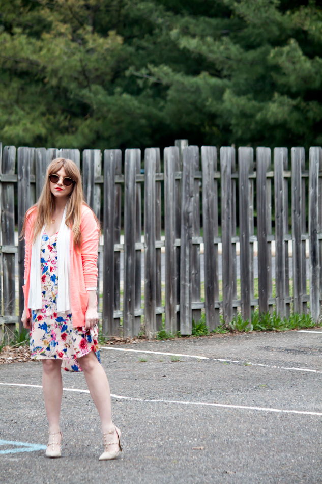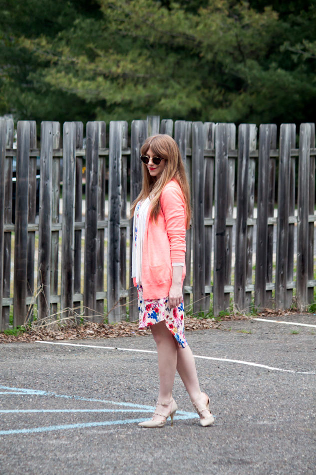 {Astr dress from Nordstrom; c/o Karen Kane cardigan; J. Crew cardigan; ShoeDazzle heels; c/o Miriam Merenfeld necklace; misc. rings and sunglasses}