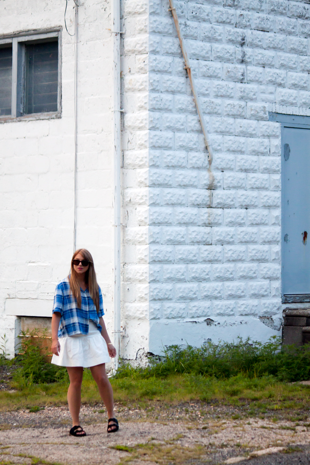 {J. Crew skirt; Steve Madden sandals; ℅ Abaday shirt; misc. bracelet; Kate Spade Saturday and Catbird rings; Tommy Hilfiger sunglasses from Nordstrom Rack; Asos earrings}