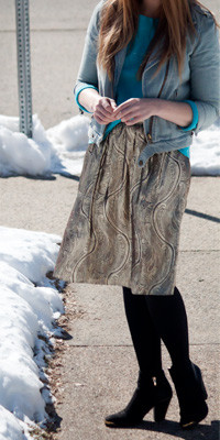 {Old Navy jacket; J. Crew skirt; Bakers boots; H&M tights; American Eagle hat; c/o Sunglass Warehouse sunglasses}