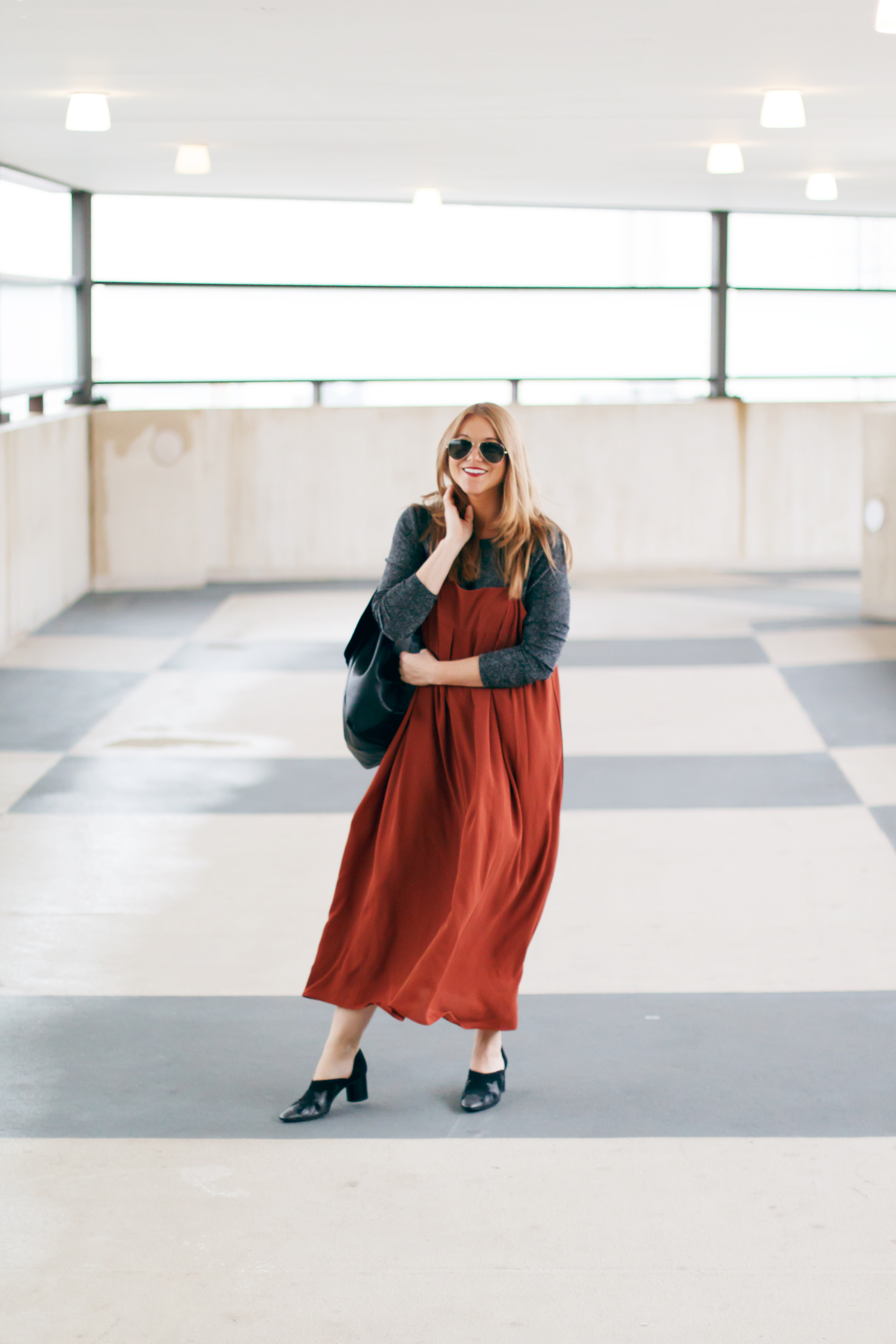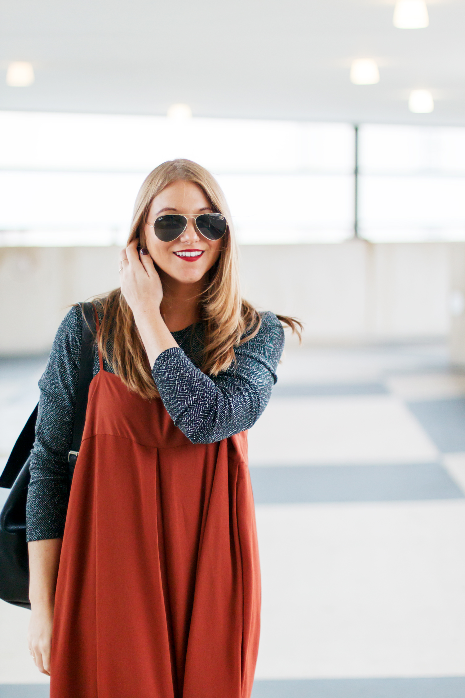 One of the things at the very top of my fall wardrobe wish list was a long-sleeved top that could be layered under things like slip dresses and overalls and prolong the life of some summery pieces. I found this glittery, black top on sale and decided it was just luxe enough to add some interest, yet still pretty basic to be versatile. It’s been rainy and chilly this week so it was the perfect opportunity to break it in.