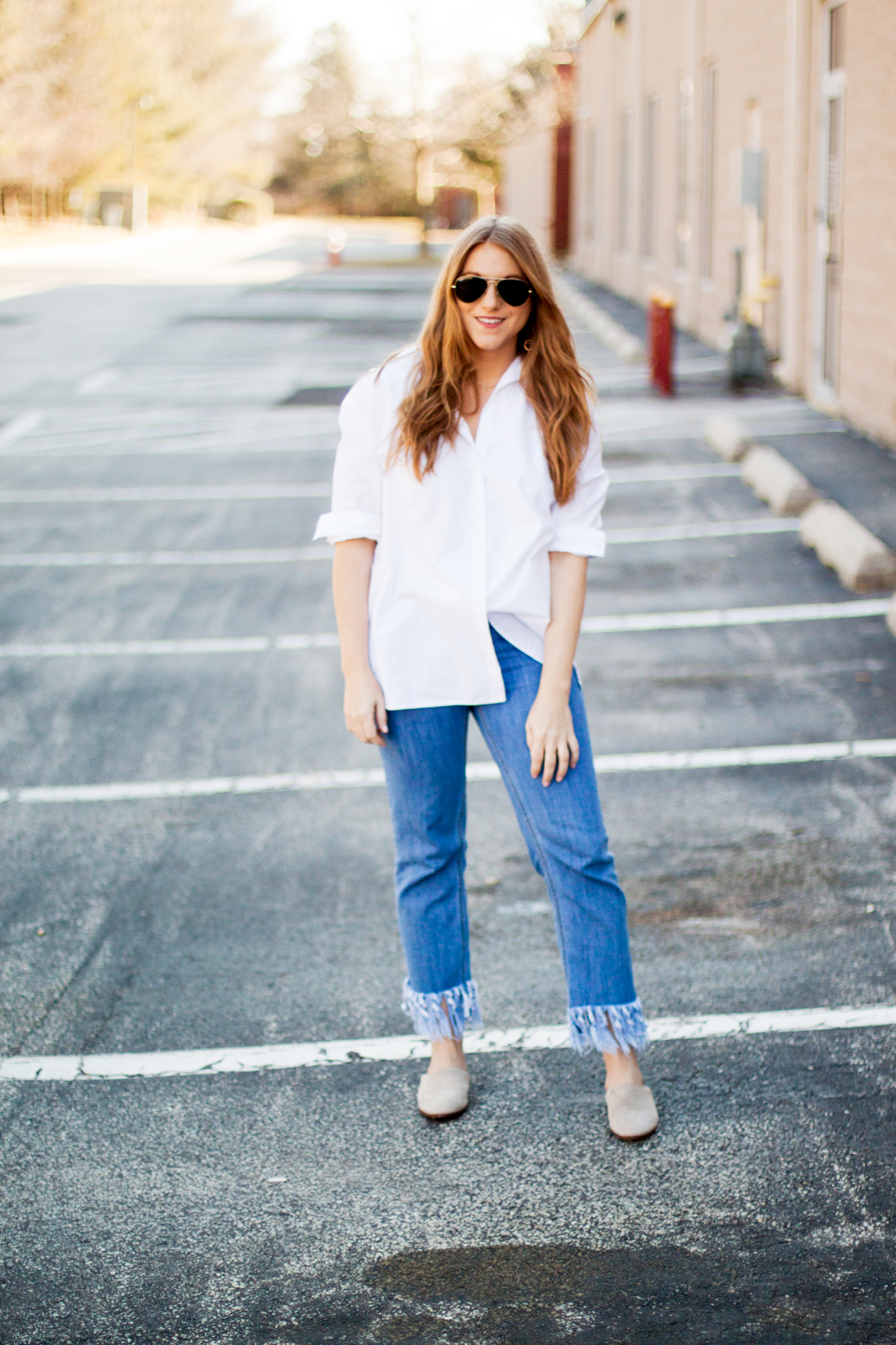 Every wardrobe needs at least one great white button down shirt. It’s a staple, a classic, and wears just as well with a sleek skirt as it does with fringed jeans. I’m partial to an oversized style for a laid-back, holiday weekend look.