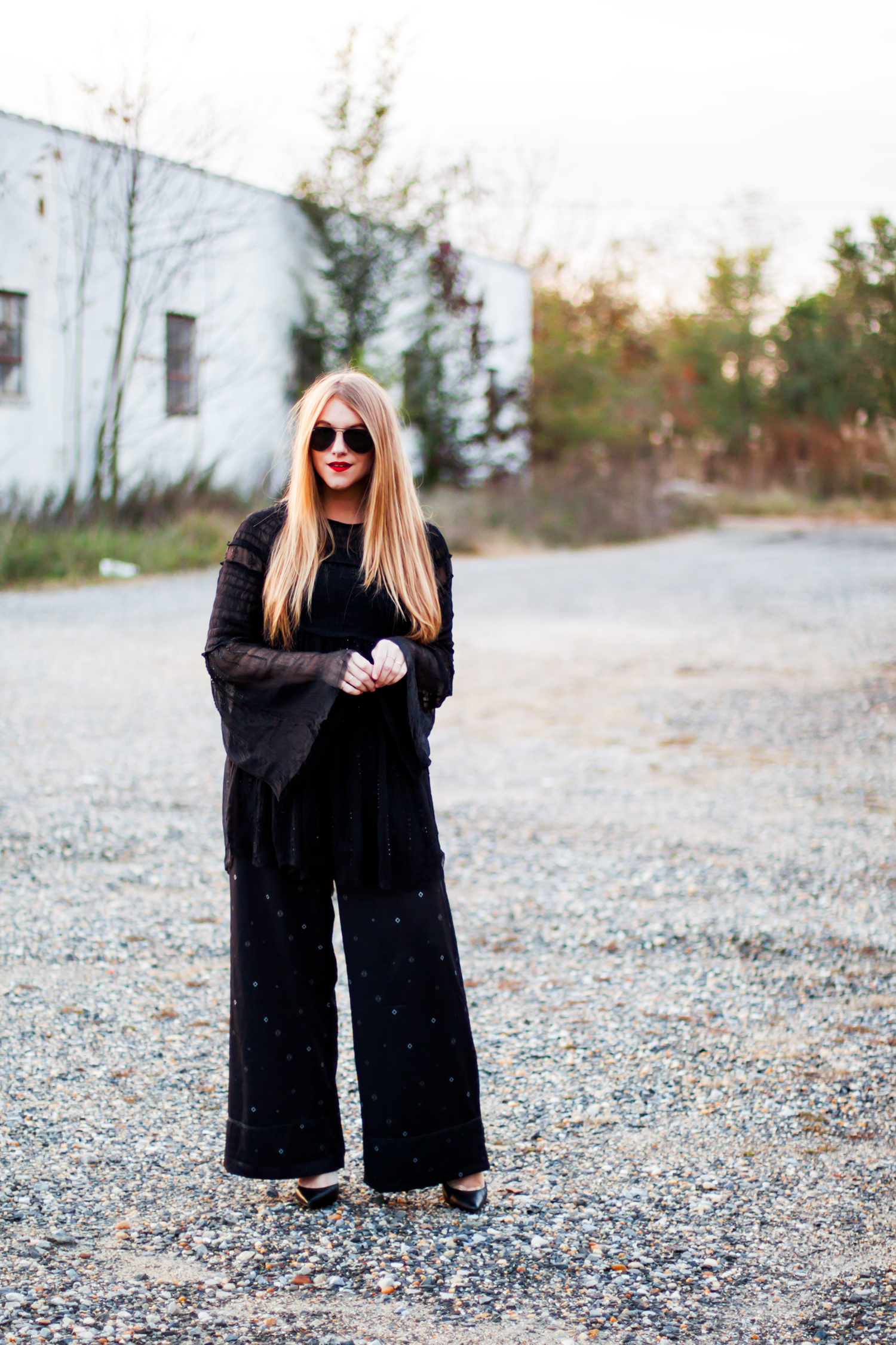 With Thanksgiving this week, I can’t help but start thinking about the perfect outfit for the holiday. Something that’s still pulled together, yet also comfortable enough for a day full of eating and catching up with family. A wide-leg, pajama style pant paired with a gauzy, flowy top and mule heels is one of those options I’m thinking is an ideal fit for the day — relaxed, yet dressed up just enough, and oh so forgiving after all that turkey and stuffing.