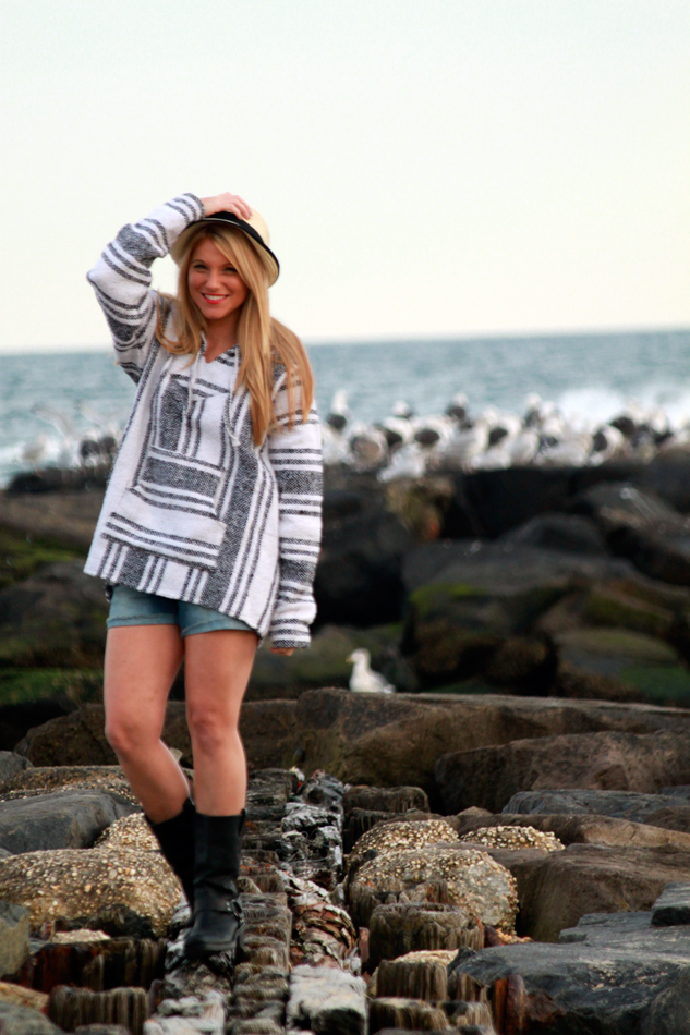 Every girl needs a comfy dress-down piece she can indulge in when the heels have been kicked off. I found this surfer-style pullover last weekend at a street fair and have been basically living in it ever since. It’s lined with fleece so it’s been my fail-safe cozy piece to throw on at the end of the day, or for the random October beach visit. Since we’ve still had the sprinkling of unseasonably warm weather, the bf and I took advantage of a late afternoon stroll along the coast, fully embracing the surf-side flair in the process. With much of our weekend plans revolving around the outdoors, I have no intentions of parting ways with this pullover anytime soon.