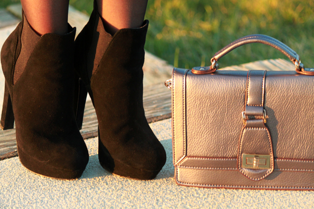 {Gap sweater and sequin skirt (previously seen here and here); Bakers booties; Poppie Jones purse via Nordstrom Rack; L’eggs tights; misc. earrings}