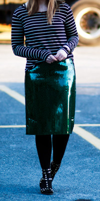 {Forever 21 sweater; American Eagle t-shirt; H&M denim; Steve Madden heels; vintage clutch; handmade (by my step-dad!) bracelet; misc. scarf/hat and ring}