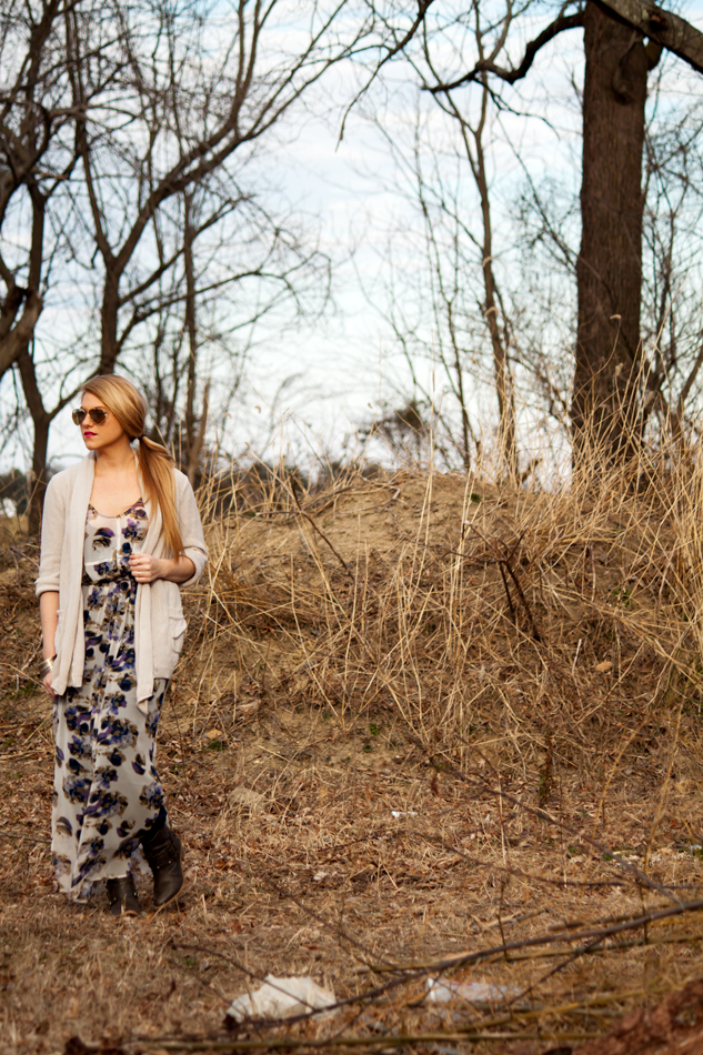 Excluding my recent fling with sweats, this may be the most comfortable outfit I’ve been in in awhile. It’s probably pretty obvious I have an affinity for flowing maxi’s but a light as air dress paired with a knit that’s just heavy enough to fend off the slight chill on an unseasonably warm late February afternoon is my idea of boho bliss.