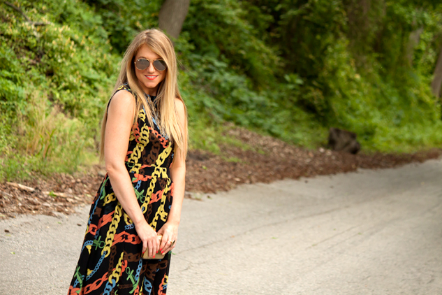{eShakti dress; Zara heels; Ray Ban sunglasses; Gemma Redux necklaces; Target ring; vintage clutch}