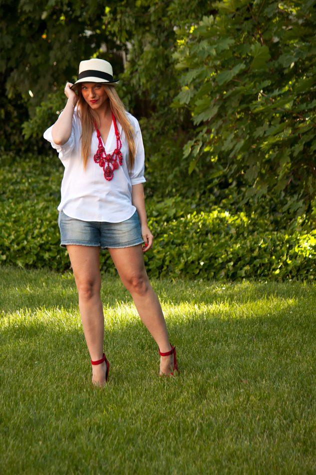 This weekend is Memorial Day weekend, which officially marks the start of summer in many people’s eyes.  I plan to attend the local town fair, enjoy time with friends, and spend the greater part of the weekend in outfits exactly like this one.  The simplicity of a crisp white top and denim shorts encapsulates the very essence of summer.