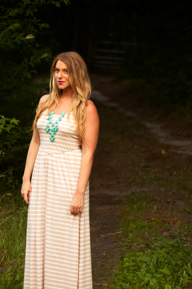 The bf and I spent some time down at the beach this weekend with friends, and even though I know better, I was less than liberal with the sunscreen.  Let’s just say I was left with some crispy red legs that begged for loose dressing.  I finally settled on this cotton maxi that was breathable enough for the hot temperatures, but heavy enough to fend off the post-burn chill and protect tender limbs from further unnecessary sun exposure.  Hopefully by tomorrow the burn will dissipate into a much more flattering tan hue, but for now I was thankful to be covered up and back home away from the coast.