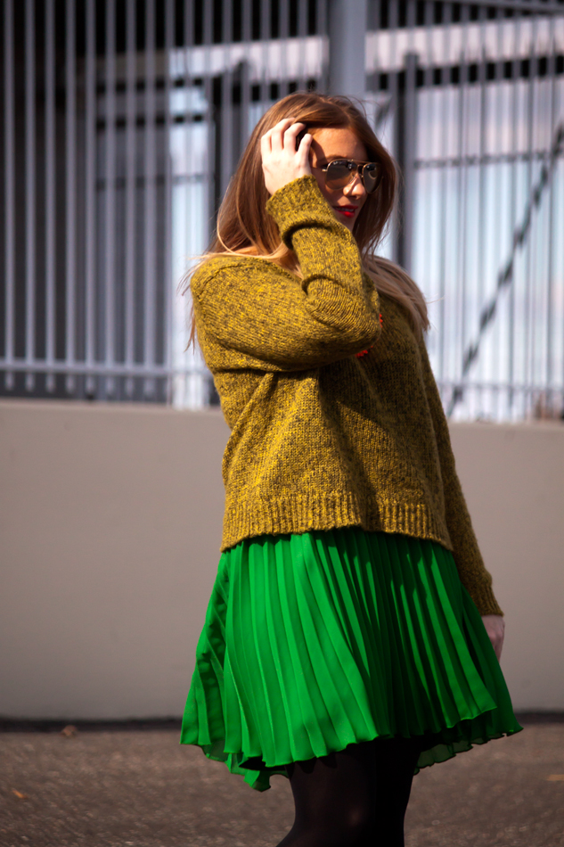 {Elle for Kohl’s skirt (similar from Asos); H&M sweater (similar from Asos); J. Crew necklace; Just Fabulous boots; misc. earrings (similar from Macy’s); Ray Ban sunglasses}