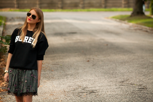 I’m definitely not bored of florals, lace, dresses with pockets, novelty tops, or sneakers dressed up. This sweatshirt may just become my layering go-to come fall, even if I don’t believe in being “bored”.