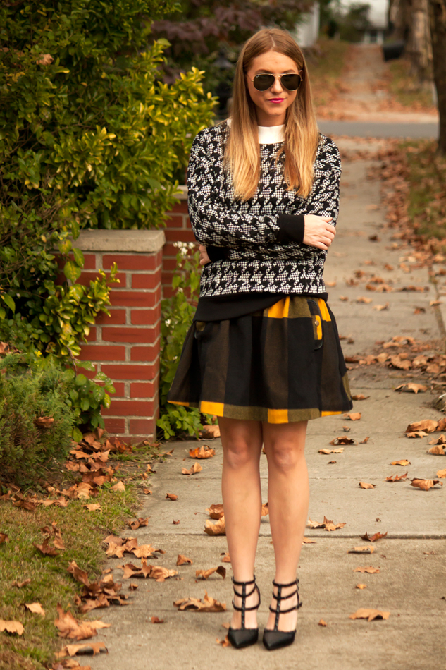 Hounds tooth and buffalo plaid are two of my favorite fall prints so of course I had to try them out together. When both prints are over-sized and have basic black in common, it somehow seems to work.